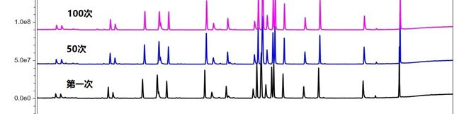 对待测解析管进行回收率或峰面积的评价,如下图:从第 一次到第100次的比较,判断解析管的使用寿命,可参考方法标准的要求,如HJ583-2010 (环境空气 苯系物的测定 固体吸附/热脱附- 气相色谱法) 对回收率的要求 为93.4 -106%,如和标准要求相差较大,则要考虑解析管是否已经到使用寿命。