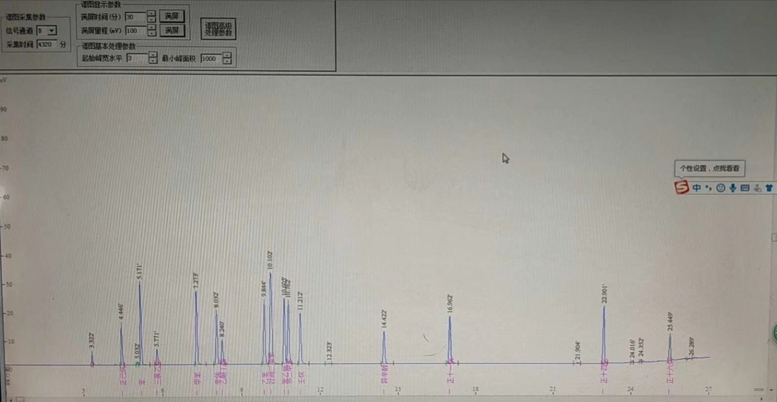样品管解析温度:250℃, 样品管活化温度:300℃, 传输管线温度120℃。