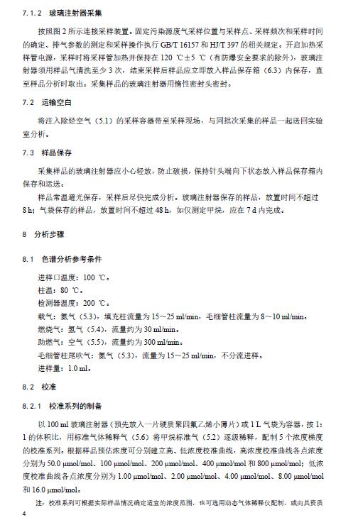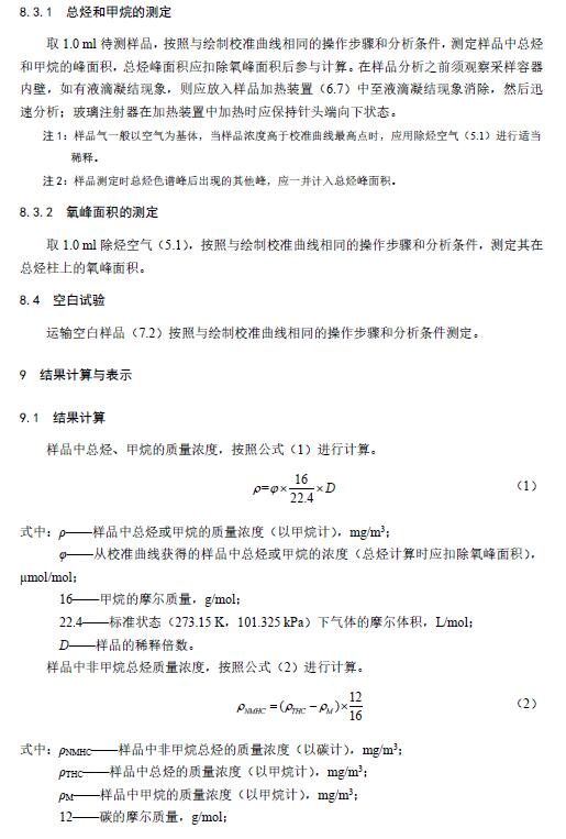 固定污染源废气 总烃、甲烷和非甲烷总烃的测定 气相色谱法
