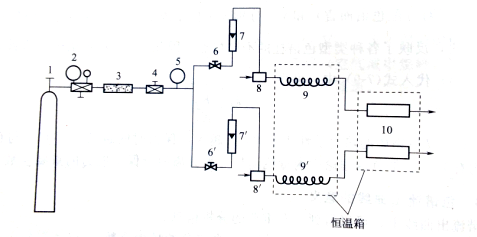 5—转子流量计;6-压力表;7—进样器;8—色谱柱;