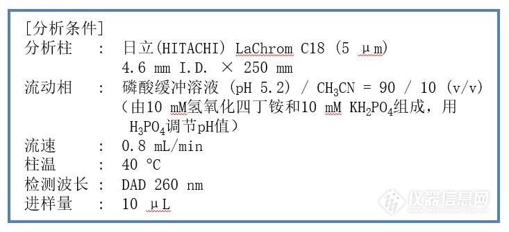 采用离子对试剂(四丁铵)作为流动相,由于离子对试剂易吸附在色谱柱上不易彻底清除,因此建议用来分析水溶性维生素的色谱柱专用。