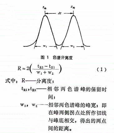气相色谱仪分离度定义:相邻两组份色谱峰保留值之差与两个组份色谱峰低宽度总和之半的比值.