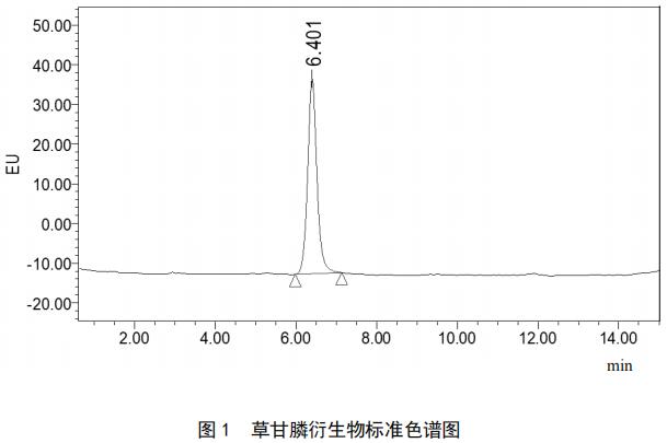 分别取适量的草甘膦标准使用液(5.17),用水稀释,制备至少5个浓度点的标准系列,草甘膦的质量浓度分别为0 μg/L、10 μg/L、20 μg/L、50 μg/L、100 μg/L、200 μg/L、500 μg/L(此为参考浓度)。