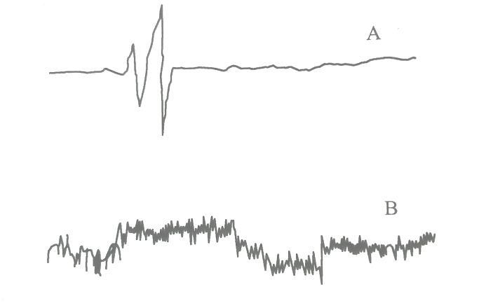 1 手柄切换时检测器基线瞬间波动,与手柄运动同时产生。