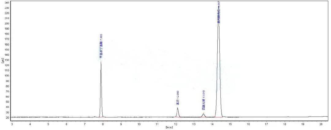 山东谱析公司使用GC-17气相色谱仪 AE.OV-1301(60m*0.32mm*1.8um)毛细色谱柱,分析甲基叔丁基醚、氯仿、四氯化碳、氯代新戊烷含量。