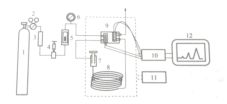 5—转子流量计;6-压力表;7—进样器;8—色谱柱;