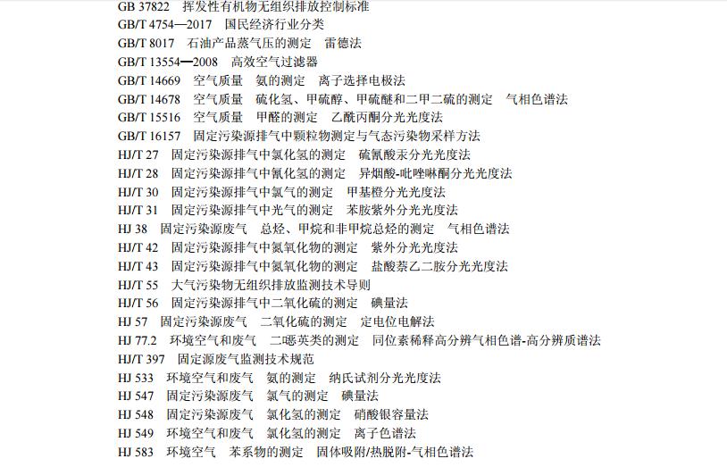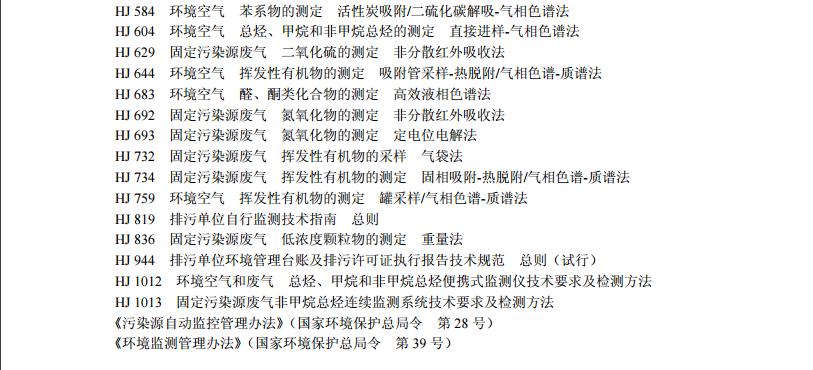 谱析仪器:环境空气、固定污染源废气中污染物监测执行标准汇总